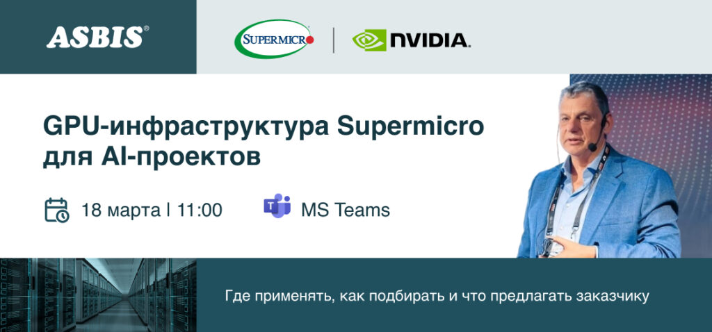 Приглашаем вас на вебинар GPU-инфраструктура Supermicro для AI-проектов: где применять, как подбирать и что предлагать заказчику.