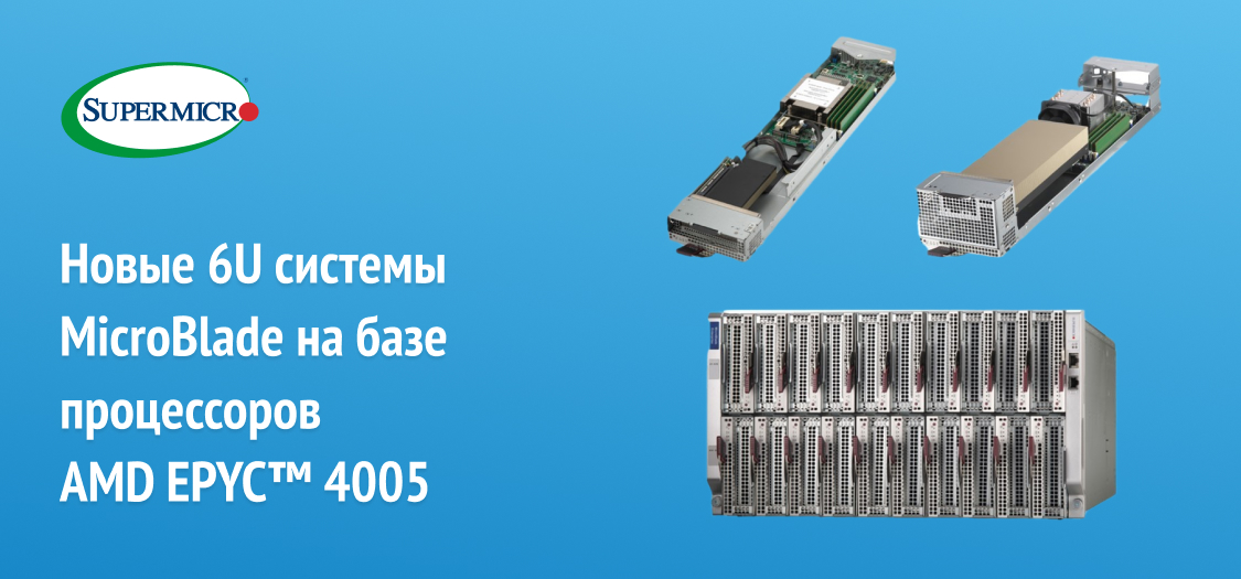 Supermicro расширяет линейку решений для сервис-провайдеров с новым 6U-модулем MicroBlade® на базе процессоров AMD EPYC™ 4005 Supermicro представила новое компактное и энергоэффективное решение MicroBlade...